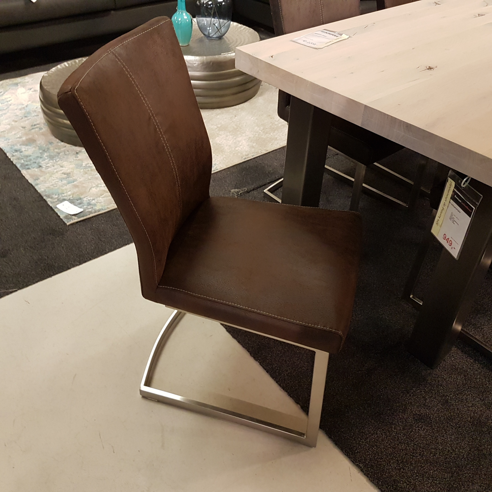 Lenneke stoel op rvs slede. Leopard stof donker bruin of antraciet. De actieprijs is 4 halen 2 betalen en uit voorraad leverbaar!