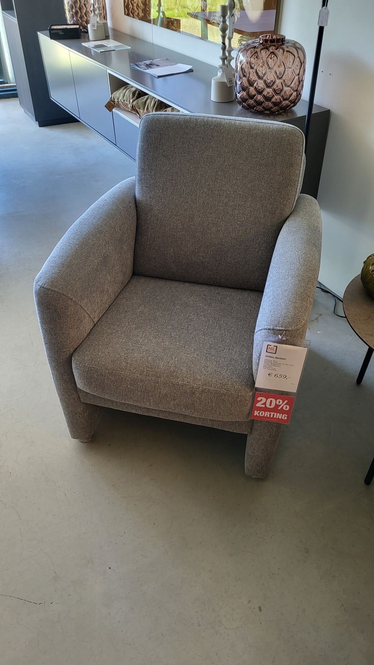 Leiden fauteuil. Brick stof zinc. De actieprijs geldt voor het showmodel!