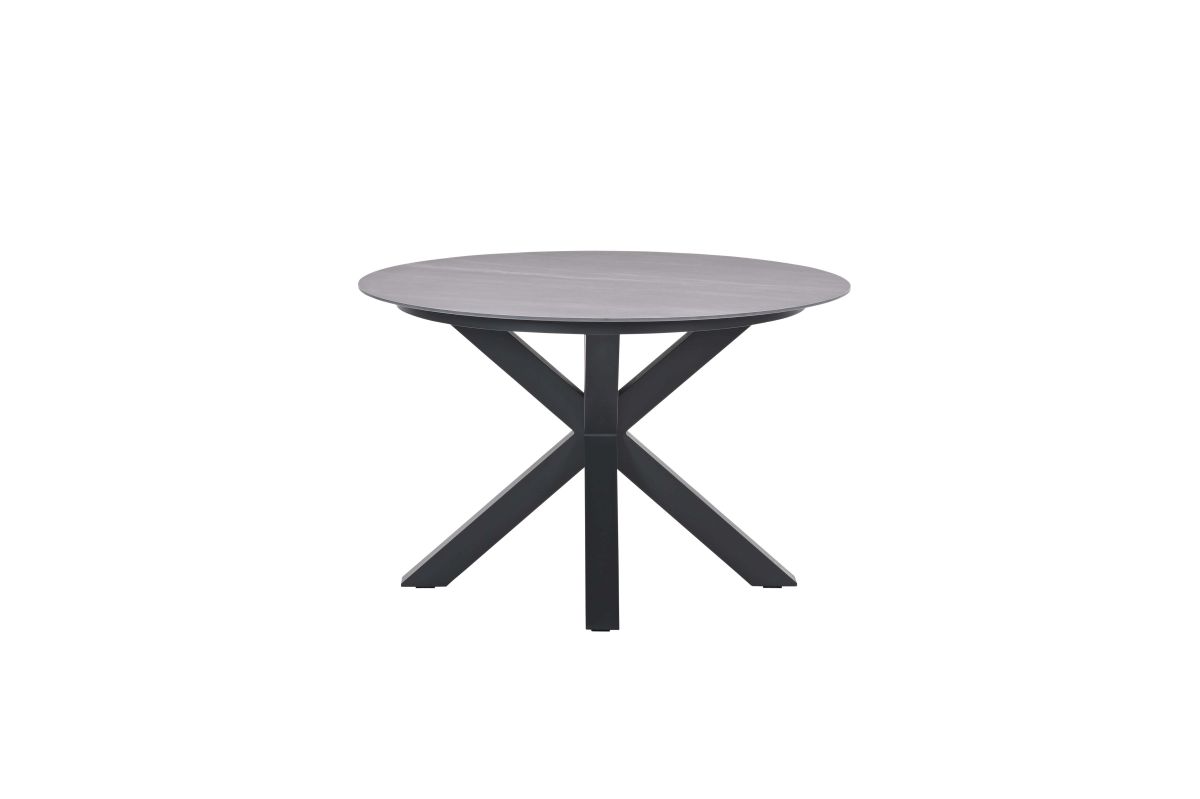 De Lowland tuintafel is rond 120cm. Centostone blad leverbaar in grey en sand kleur met antraciet aluminium frame.