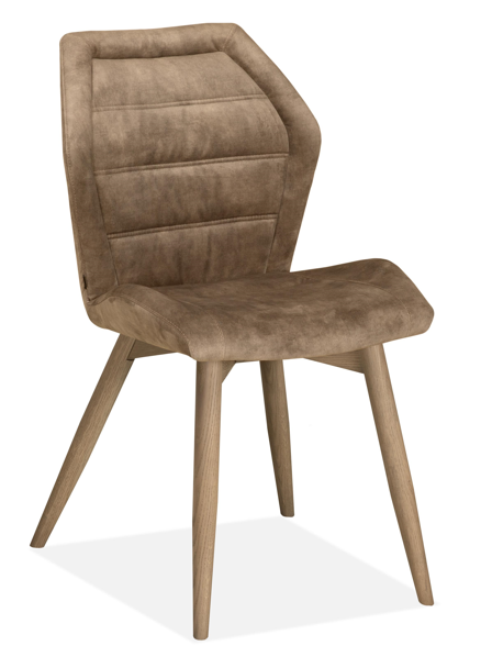 De Finn eetkamerstoel is leverbaar met 2 soorten houten poot en in 3 soorten stof in diverse kleuren.