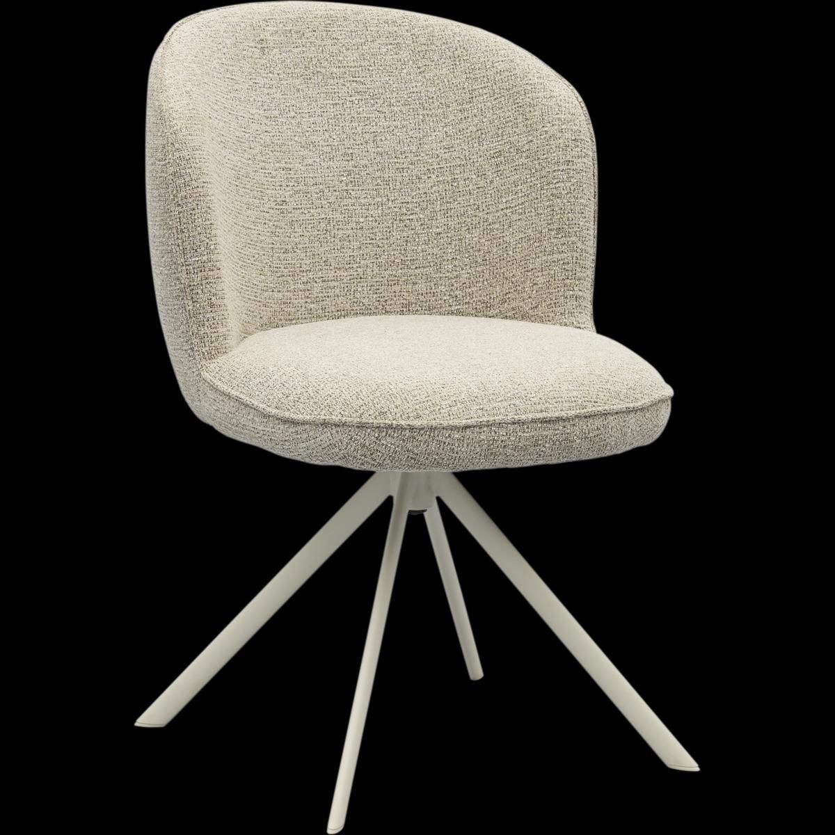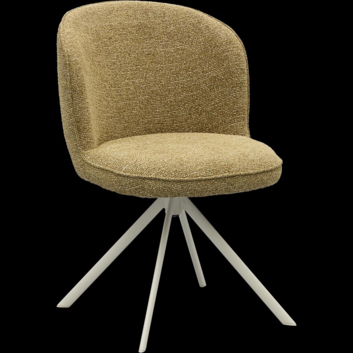 De Katey eetkamerstoel heeft een zwart metalen poot en is leverbaar in Present stof autumn, dark brown en sandy.