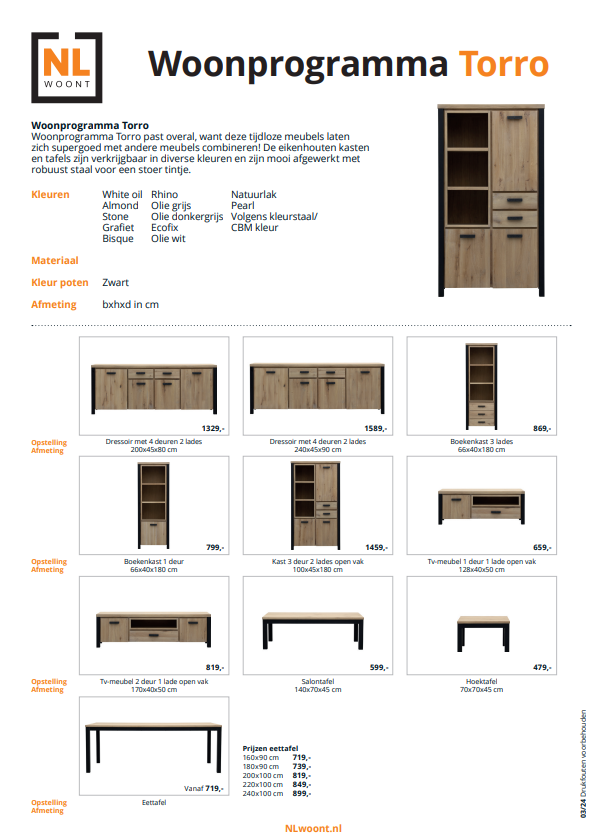 Het Torro dressoir is 200cm breed x 45cm diep x 80cm hoog. Deze kast is gemaakt van eiken met zwart metalen accenten. Ook leverbaar in 240cm breed. Bijpassend leverbaar bergkasten, tv dressoirs, eettafels en salontafels.