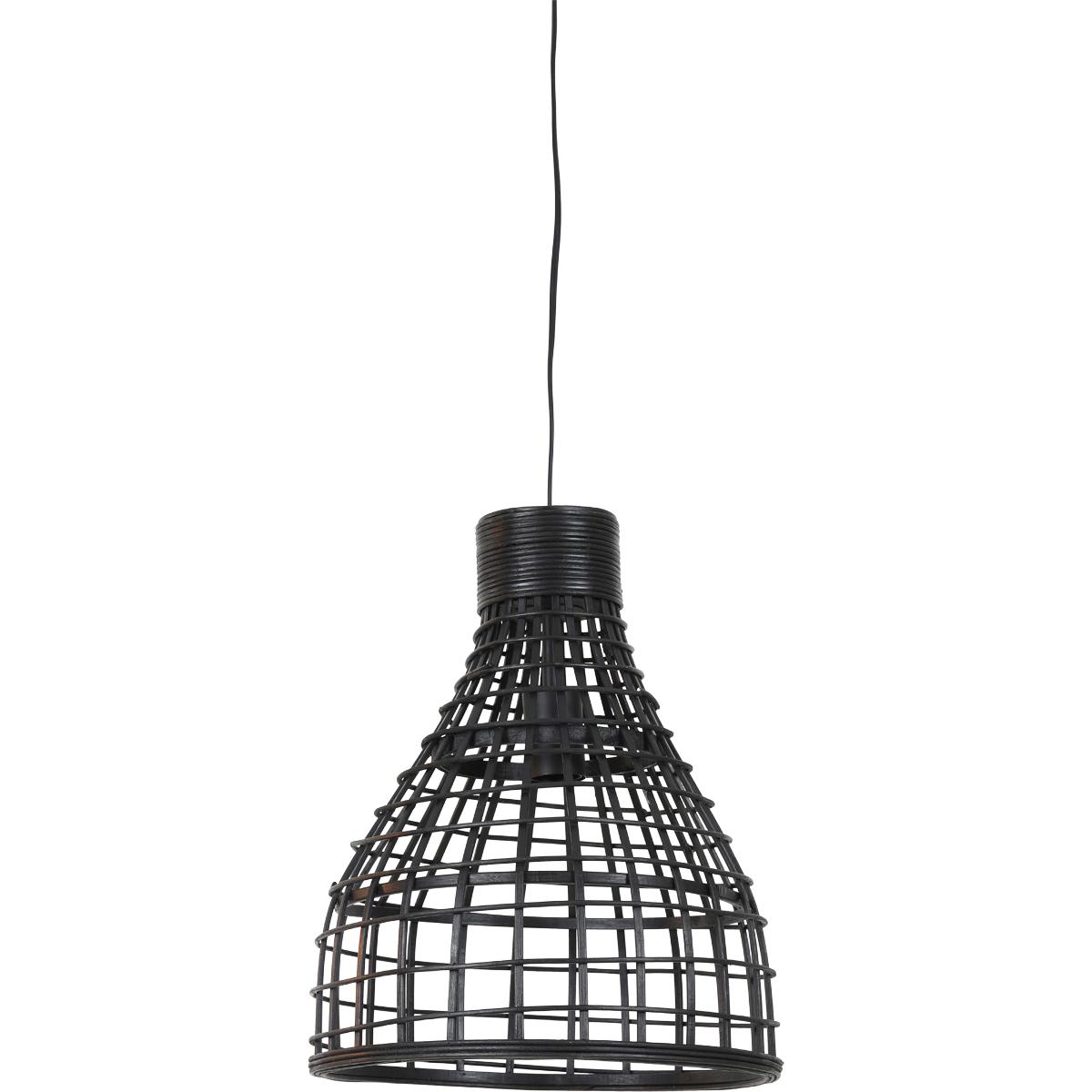 De Porto hanglamp is doorsnede 24cm x 41,5cm hoog. Rotan zwart.
